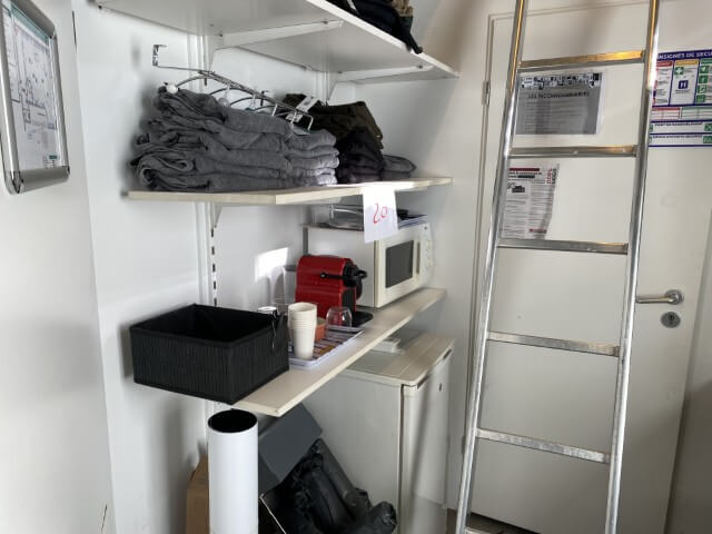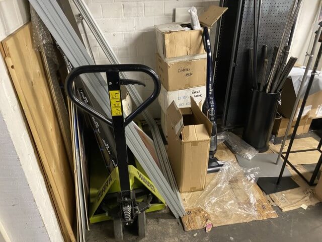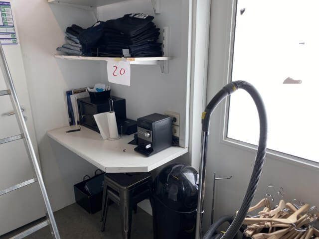Divers équipements et appareils tels que mini-frigos, micro-ondes, machines à café, aspirateurs, chariots, escabeaux et petit matériel de magasin sont également compris dans la vente.