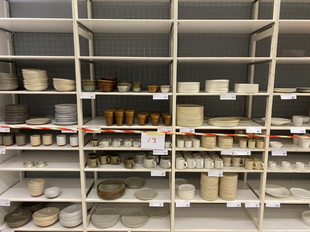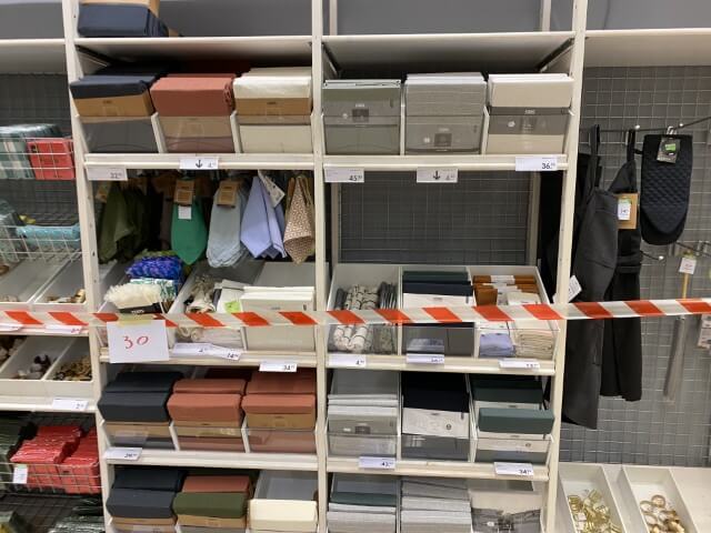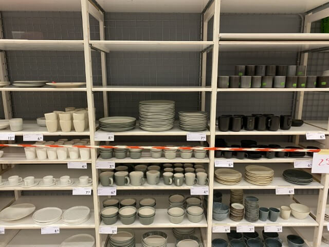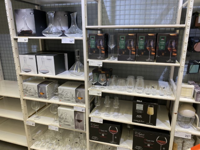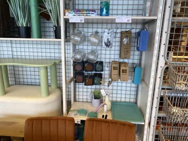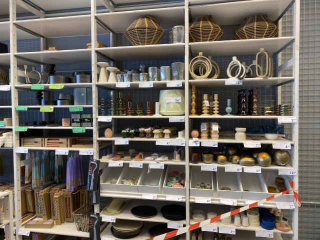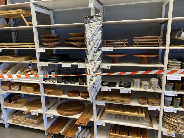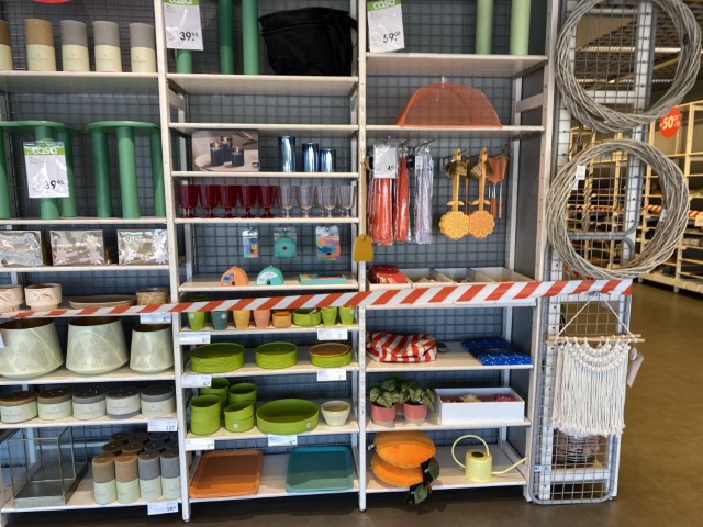 Articles de maison et de cuisine : vaisselle (assiettes, verres, tasses, couverts), plats à four, poêles, couteaux et blocs magnétiques, planches de découpe, nappes, chemins et sets de table, serviettes de cuisine, boîtes de conservation, poubelles à pédale, corbeilles en rotin et vintage.