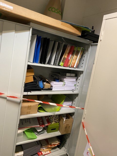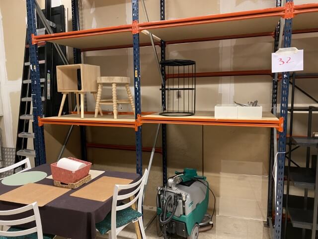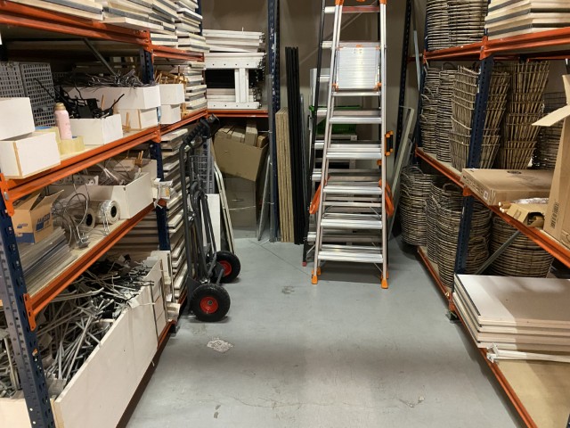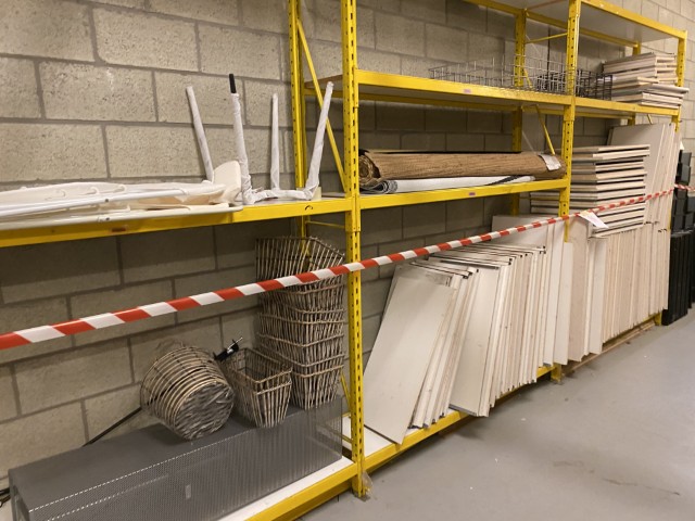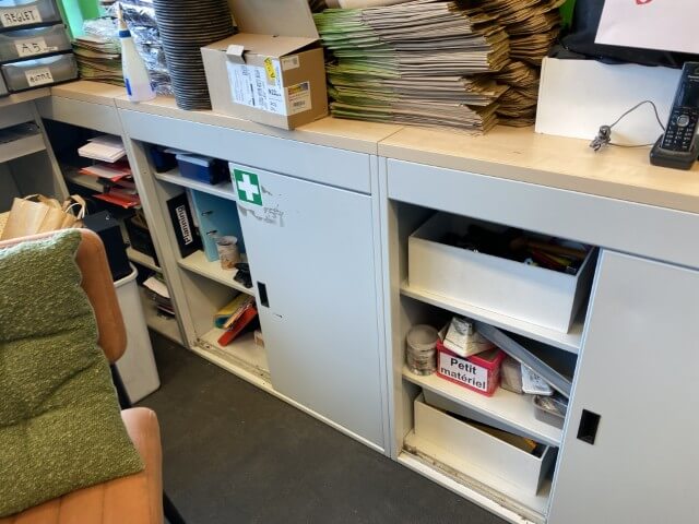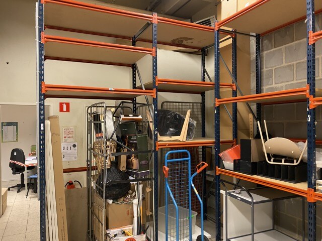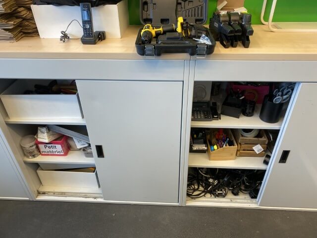 Mobilier de bureau : bureaux, chaises, tables, armoires de rangement et vestiaires métalliques, caissons, consoles, étagères murales et étagères à démonter, dessertes de cuisine, expositeurs.