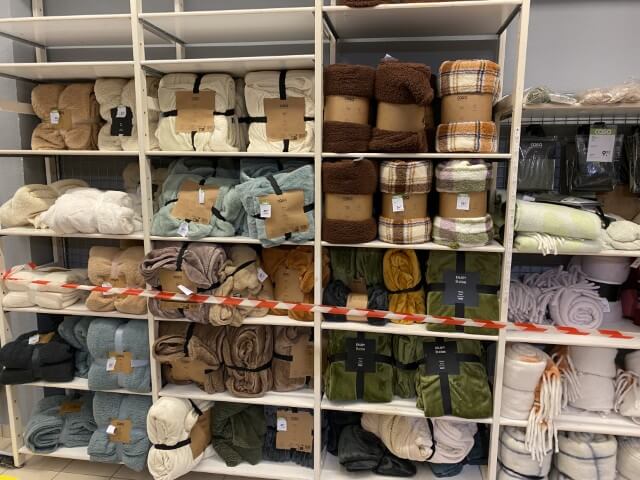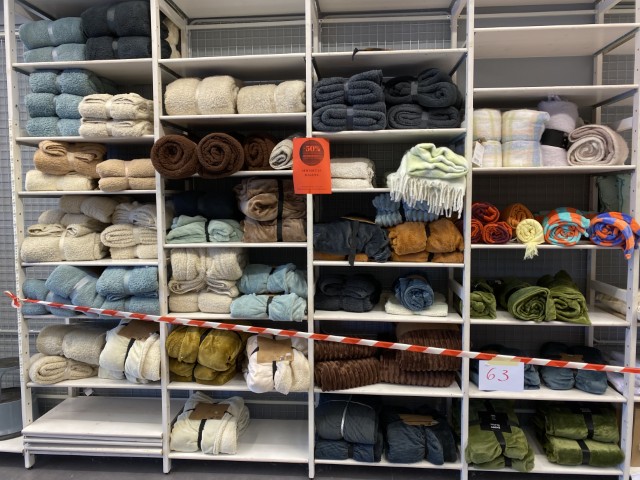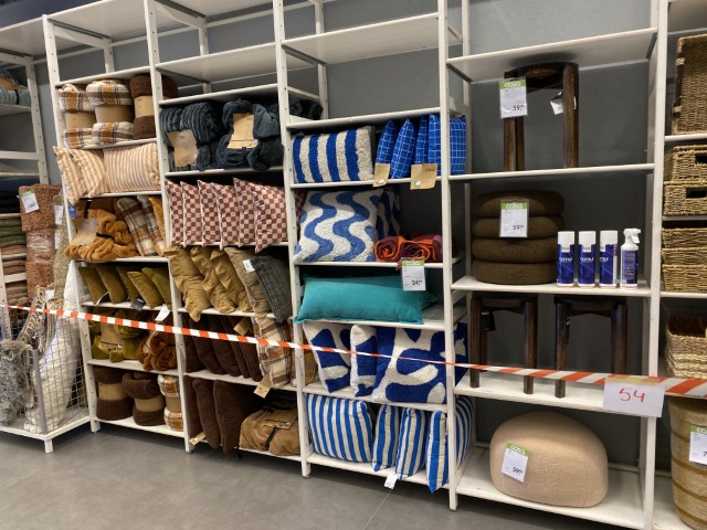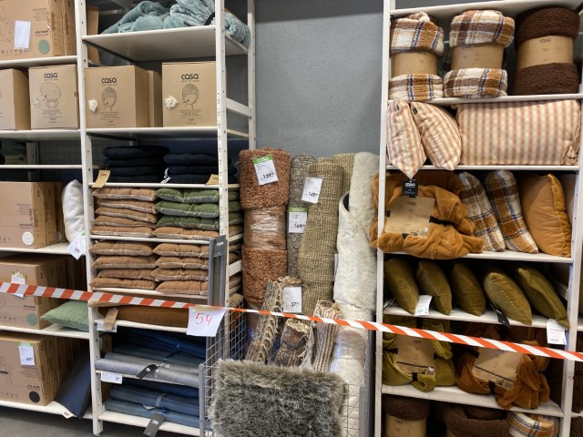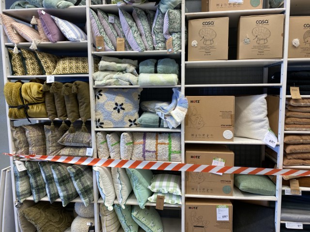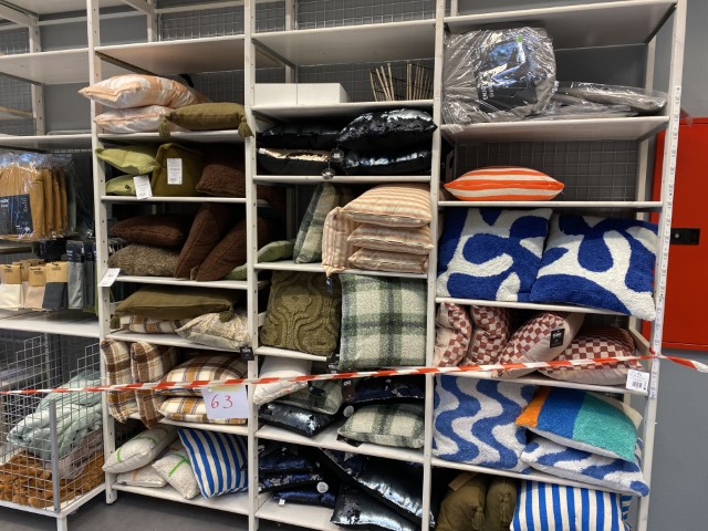 Textiles : coussins et coussins chauffants, housses de coussins, plaids, tapis, rideaux, linge de maison, linge de bain et de cuisine.
