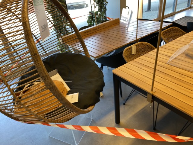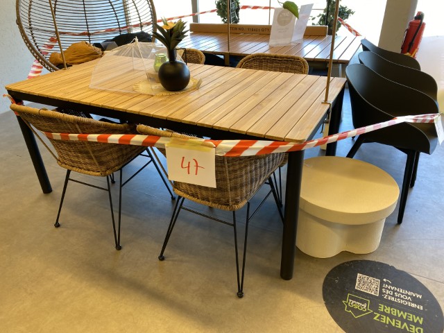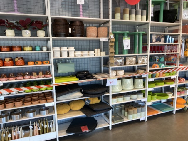 Articles de jardin et d’extérieur : tables et chaises de jardin, parasols, transats, hamacs, coussins d’extérieur, bacs et supports pour plantes, pots de fleurs.