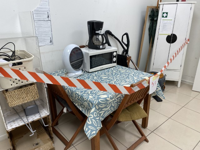 Électroménager et équipements divers : mini-frigos, micro-ondes, machines à café, cafetières, machines à barbe à papa, machines à pop-corn, broyeurs à glace, aspirateurs, autolaveuses BOMA, transpalettes, chariots de transport, échelles et escabeaux, chauffages et ventilateurs portables, coffres-forts, visseuses et petit outillage.